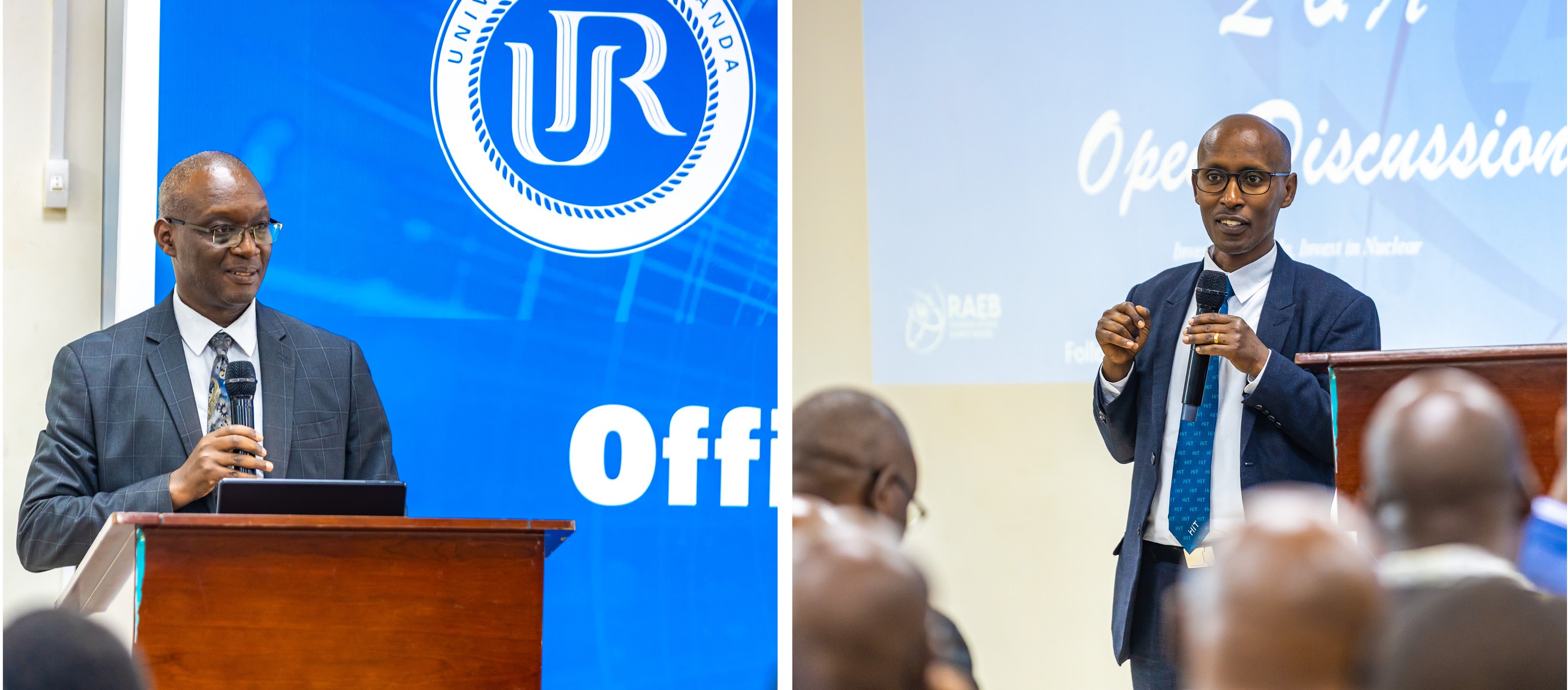 Pictured from left: Dr. Fidele Ndahayo, Chief Executive Officer of the Rwanda Atomic Energy Board and Prof. Ignace Gatare Principal of the College of Science and Technology.
